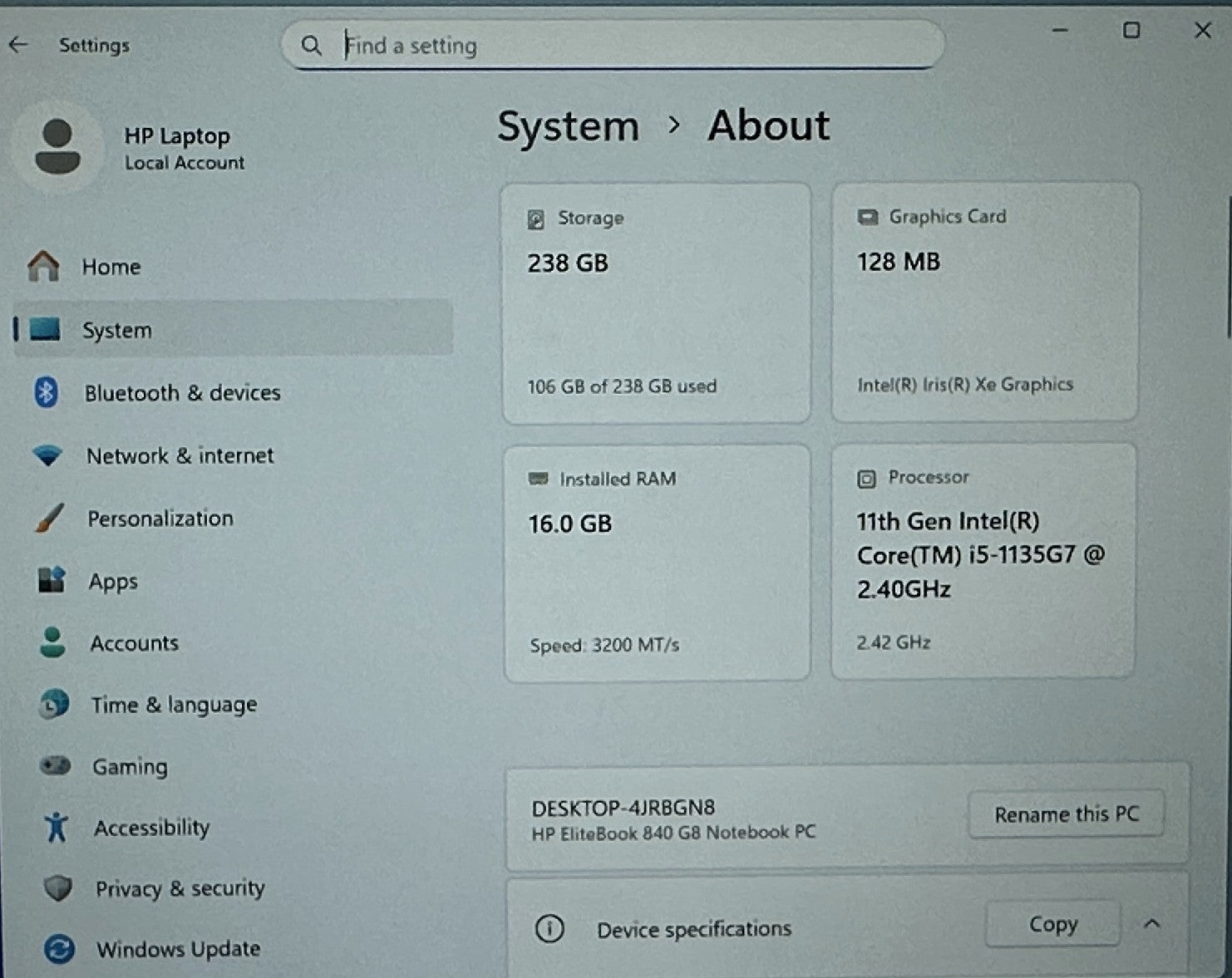 Specs: 2.4GHz, 16gb RAM, QUAD core i5-1135G7 processor