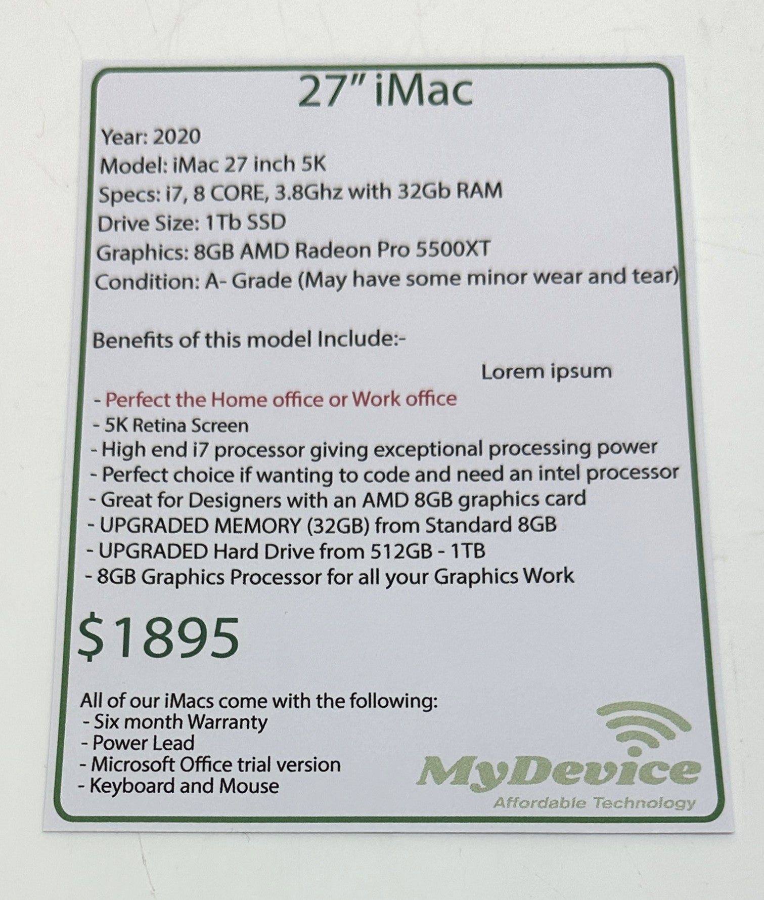 Specs: 3.8GHz EIGHT CORE i7 with 32GB RAM