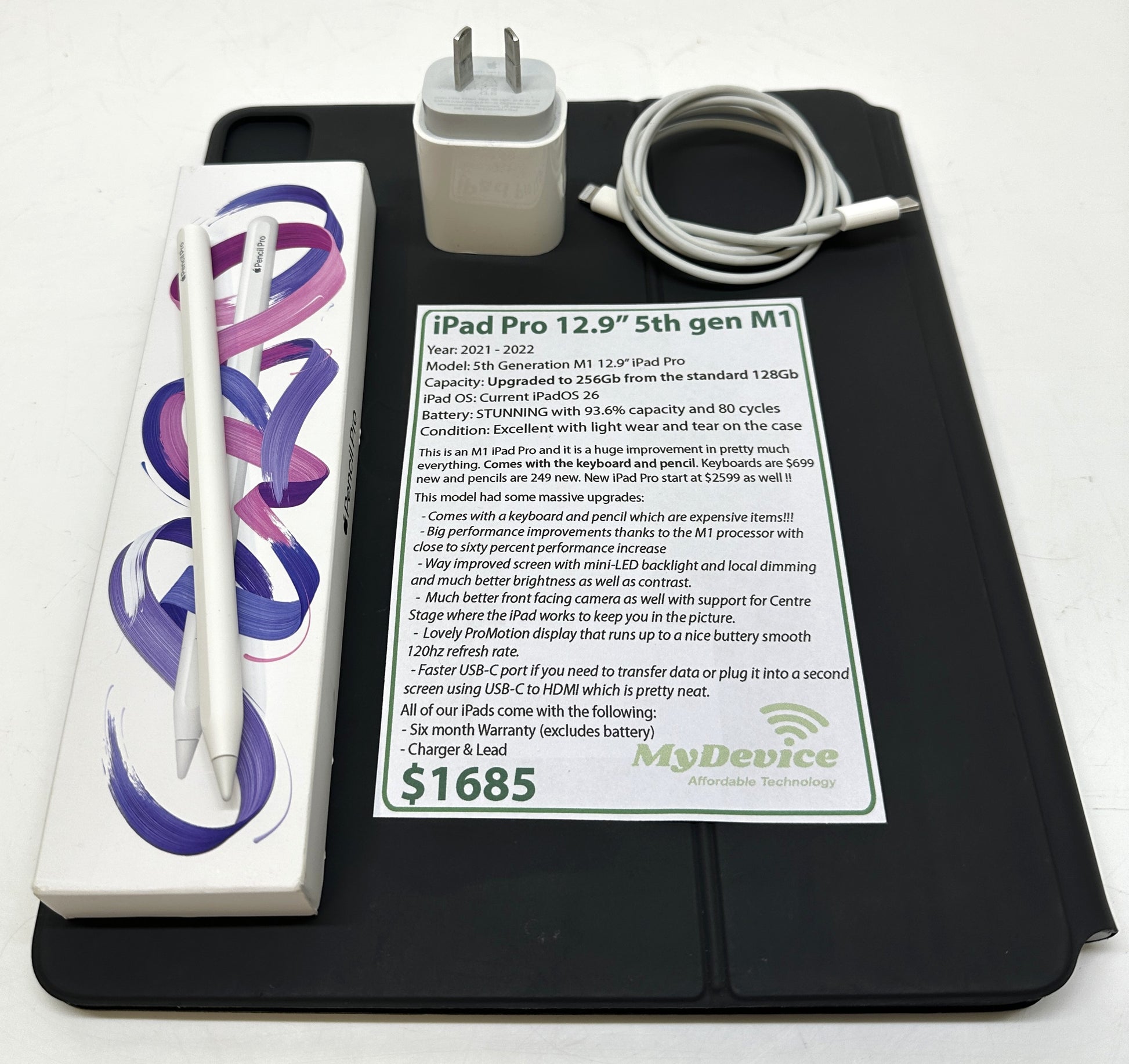 This is an M1 iPad Pro and it is a huge improvement in pretty much everything. If you need a really fast iPad then this is a brilliant choice especially when you find out a new starts at $2599! This one comes with the Magic Keyboard For iPad Pro that would normally cost $699 new! So hurry up and make a huge saving!