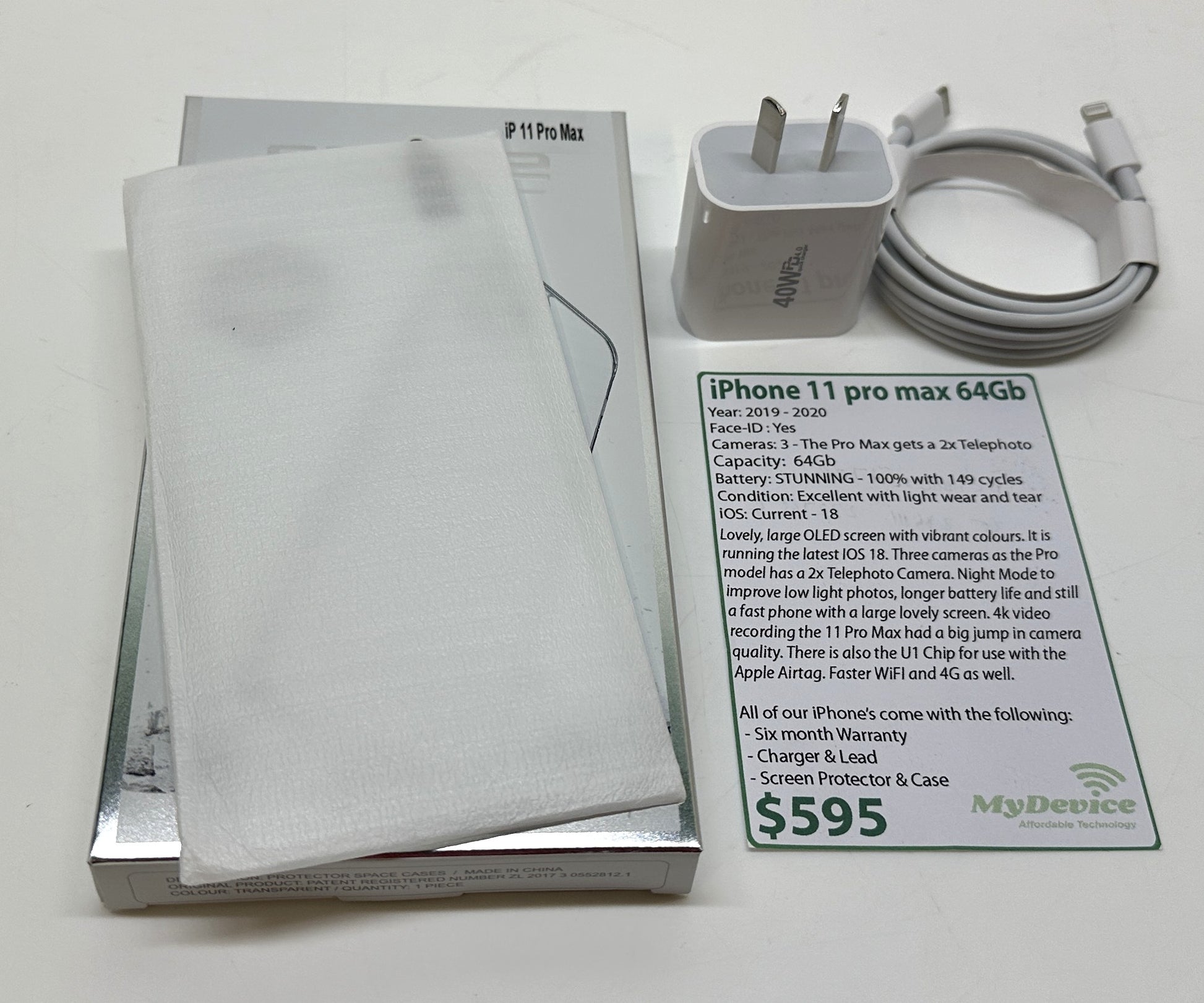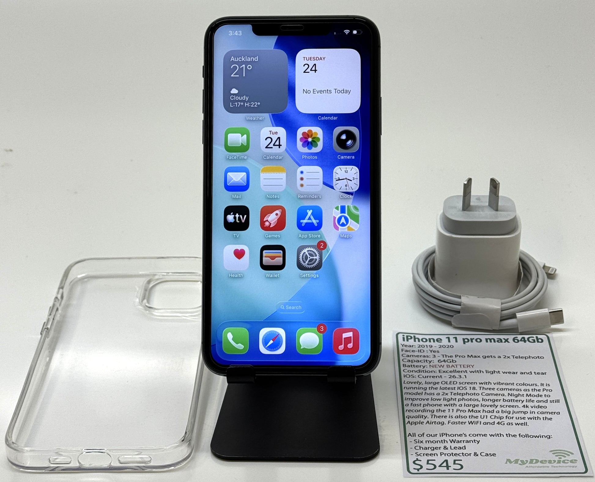 The iPhone 11Pro Max offers more advanced features such as the 2x telephoto lens camera, night mode to improve low light photos, Spatial Audio, Support for Dolby Atmos and most importantly: an improved selfie camera! There is also the U1 chip for use with the Apple Airtag. Also the blindingly fast 6 CORE A13 Bionic chip, making an incredibly fast phone. There are lots more improvements as well with another big one being faster Face-id that works from more angles.