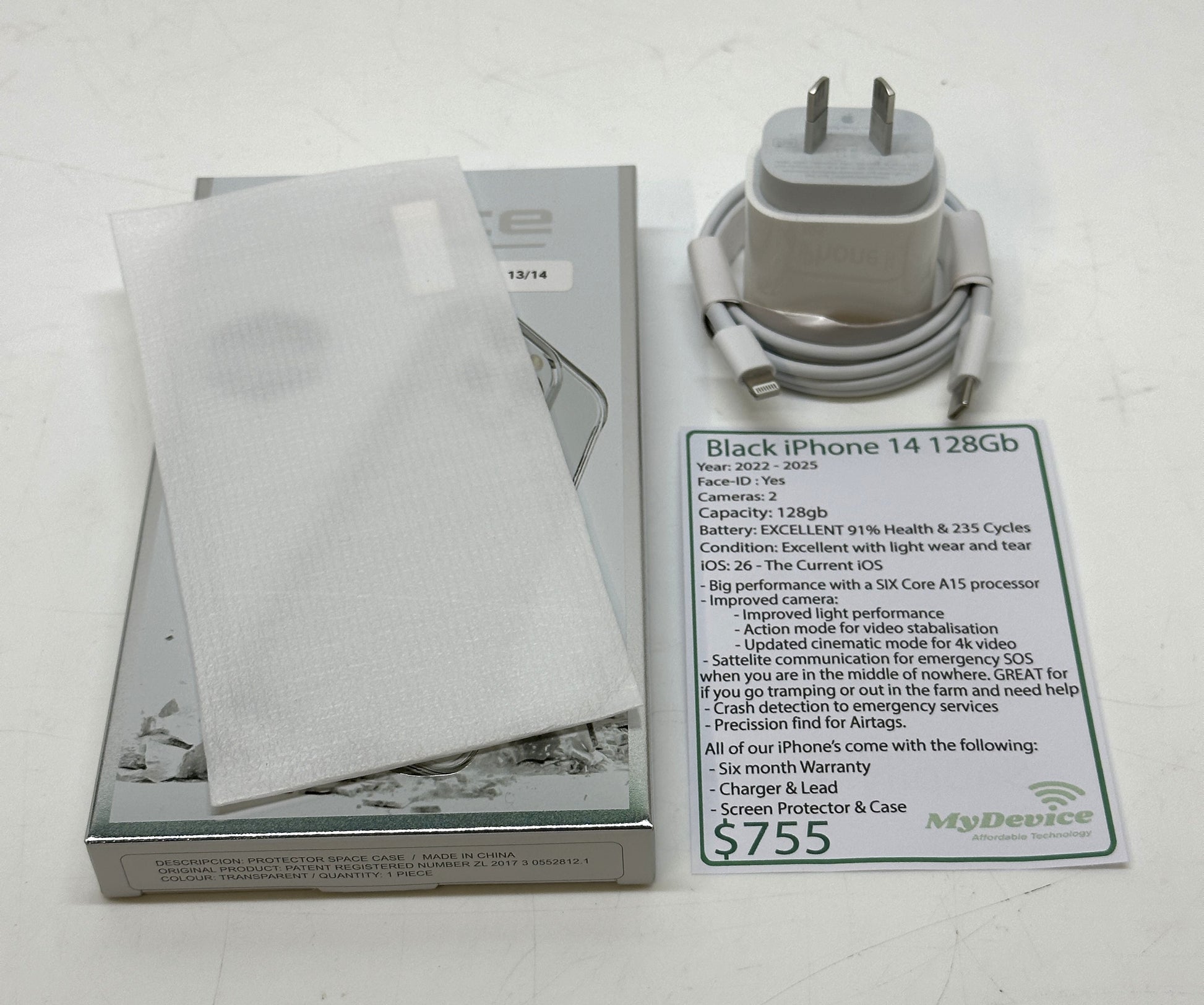The iPhone 14 offers big performance with the SIX Core A15 Bionic processor which basically means it is really fast! Dual cameras (wide and ultrawide) with bigger sensors. long battery life on the iPhone 14 (Apple reports that the iPhone 14 provides "up to" 80 hours of audio playback, 20 hours of video playback, and 16 hours of streamed video playback.) Same great BASE storage options. It has "Crash Detection", "Emergency SOS", and support for both dual eSIMs and a single hardware nano-SIM. Most other features are the same, as the iPhone 13 including: Magsafe and 5G support, selfie camera “Night Mode” and “Deep Fusion” making for a stunning photos and the same stunning 6.1" Super Retina XDR OLED display