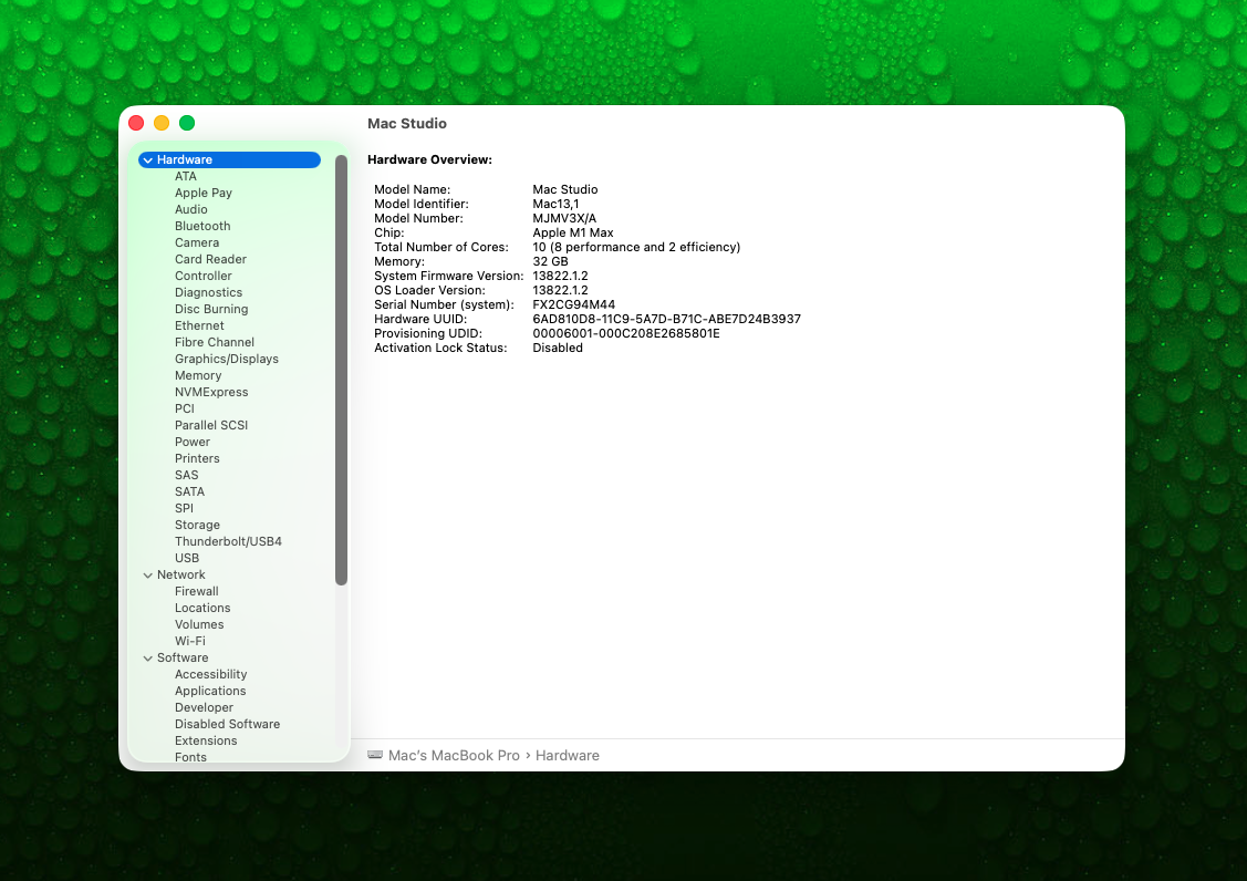 Specs: 3.2GHz, 32Gb RAM, M1 10 Cores - 8 Performance & 2 Efficiency, 24 Core Graphics